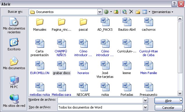 Guarda y abre documentos de Word en mis documentos o en carpetas personales.